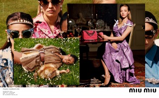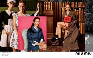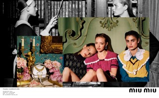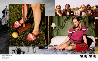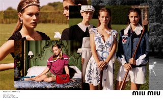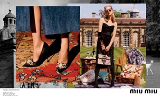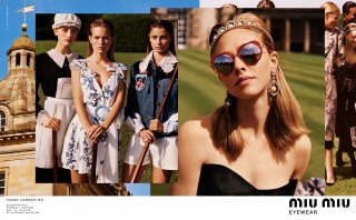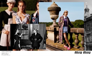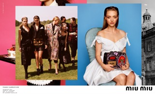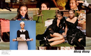 The Fall Winter 2016 Miu Miu campaign consists of a series of photographs lensed by Alasdair McLellan and arranged as a collage to mimic an old family album. Shot in Norfolk, England at historic Houghton Hall, the campaign features actress Amanda Seyfried as she leads a group of talents through the impressive house and its sprawling grounds. Each talent personifies a role, and the mixture of maids and ladies interacting casually throughout the elegant house provides a somewhat ironic look at the archetypes of British nobility. The campaign film further pushes this narrative through the use of incongruous sounds accompanying the seemingly perfect imagery.