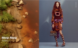 Jamie Hawkesworth shoots the Miu Miu Resort 2015 Campaign – a series of portraits paired with landscapes echoing the rich colors in the collection. The photographers’ artful pairings bring out the earthy palette of the clothing and establish a narrative between our Miu Miu girl and her surroundings. The abstraction of the landscape mimics the delicate movements and poses of the model and her clothing. These diptychs create a certain time and place in which the collection exists, evoking an abstract narrative where the clothes come to life.