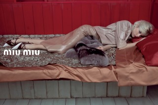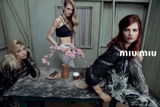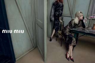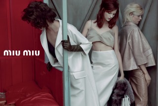 Lensed by Inez and Vinoodh, the Spring Summer 13 campaign portrays a group of models shot in a theatrical environment inspired by Antonioni’s The Red Desert. These women are portrayed in harmony with one-another in a world of leisurely bliss – laughing, talking, or comforting each other. They are united in the moments they share together, but each one of them has a unique look and embodies a unique woman. The real purpose of this gathering remains unclear, and this mystery adds to the multifaceted nature of these women: femme fatales mixed with innocent ingénues, joyful ladies with nostalgic beauties.