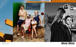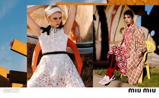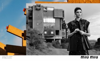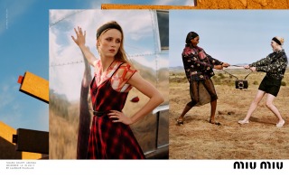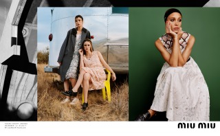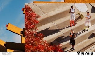 Shot in the experimental town of Arcosanti, Arizona the Miu Miu Spring Summer 2018 campaign depicts a group of young women in search of a commune in nature. Constructed by Italian-American architect Paolo Soleri beginning in 1970, Arcosanti exists today with the goal of fostering social interaction and reevaluating our human impact on the land. It is here where Alasdair McLellan captures actress Elle Fanning and her companions through a series of images and a video exploring space, form, function and above all, female solidarity.
